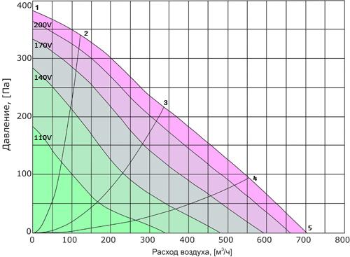 Размеры и воздухопроизводительность вентиляторов круглого сечения