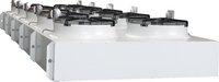 Вентиляторы: диаметр 500, 630 и 800 мм (400В-3ф-50Гц); количество от 1 до 16 шт. (расположены в 1 или 2 ряда). Шумовые характеристики: 8 уровней звуковой мощности (4 базовых частоты + 2 скорости вращения вентиляторов). Корпус из гальванизированной стали окрашенный полиуретановой смолой (RAL 7035) методом высокотемпературного запекания. Оборудование может комплектоваться различными опциями, среди которых: