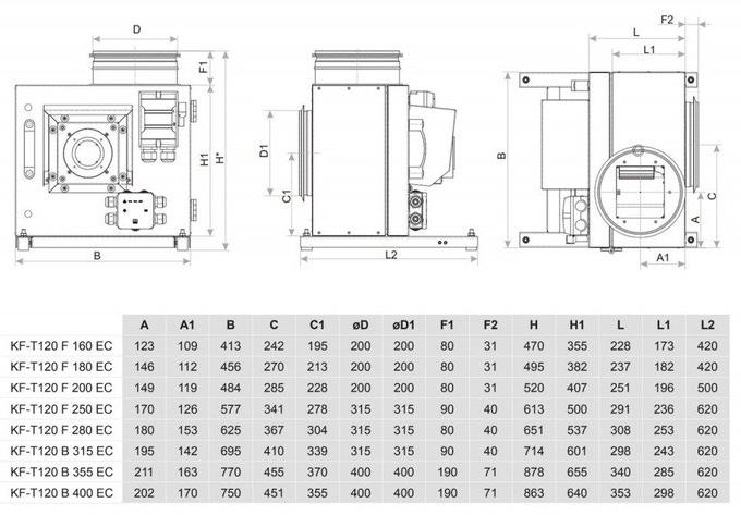 Высокотемпературный канальный вентилятор Salda (Сальда) KF T120 F 280 EC отличается высокими техническими параметрами и обеспечивает вытяжку воздуха из коммерческих кухонных помещений. Модель изготавливается в корпусе из оцинкованной стали и оснащена рабочим колесом с загнутыми вперед лопаткам.