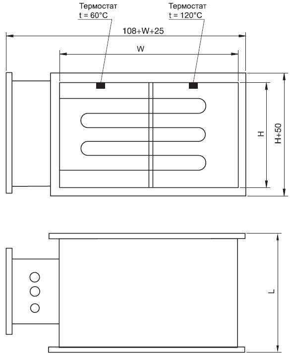 Монтаж: Нагреватели должны устанавливаться таким образом, чтобы воздушный поток был направлен согласно стрелке на корпусе. Воздухонагреватели устанавливаются внутри помещения.Возможна установка как в горизонтальных, так и в вертикальных каналах. При горизонтальной установке не допускается установка электрошкафом вверх или вниз. Расстояние от нагревателя до заслонки, фильтра, отвода и других подобных элементов должно быть не менее двух эквивалентных диаметров присоединительного патрубка.Скорость воздуха в воздухонагревателе должна быть не менее 1,5 м/с. Максимальная температура воздуха на выходе составляет 40°С..