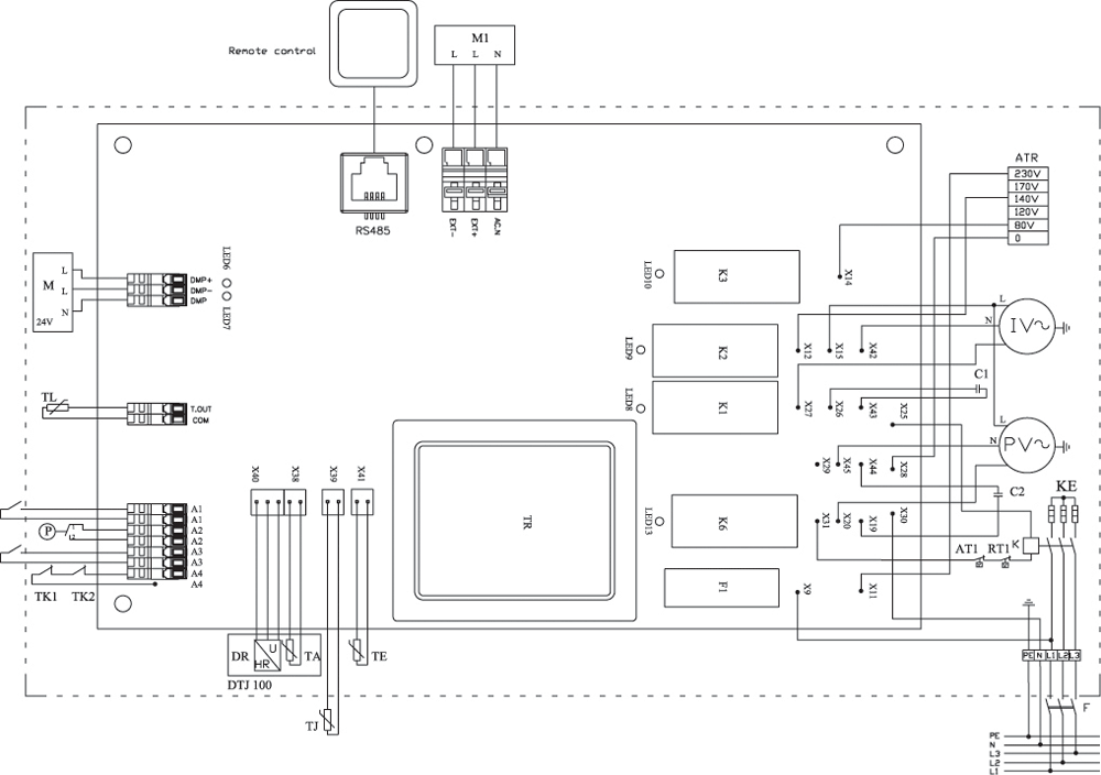 Если подключен датчик температуры наружного воздуха , может быть реализован режим компенсации температуры наружного воздуха. Это позволяет полностью использовать регенратор. Скорость вращения вентилятора изменяется с помощью автотрансформатора. Пользователь может выбрать одну из трех скоростей. Плата регулятора оснащена контактами для подключения аварийных сигналов.